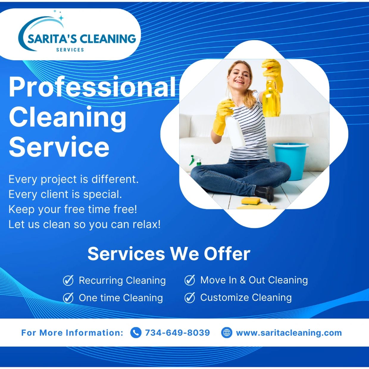 Are you tired of struggling to keep up with cleaning your home amidst a busy schedule?Look no further than Sarita's cleaning services. Our team understands that maintaining a well-cleaned home can be a challenge, especially when you have a busy schedule with family and work. That's why we offer custom cleaning services designed to meet your unique needs and preferences. We are here to help you keep your free time free!